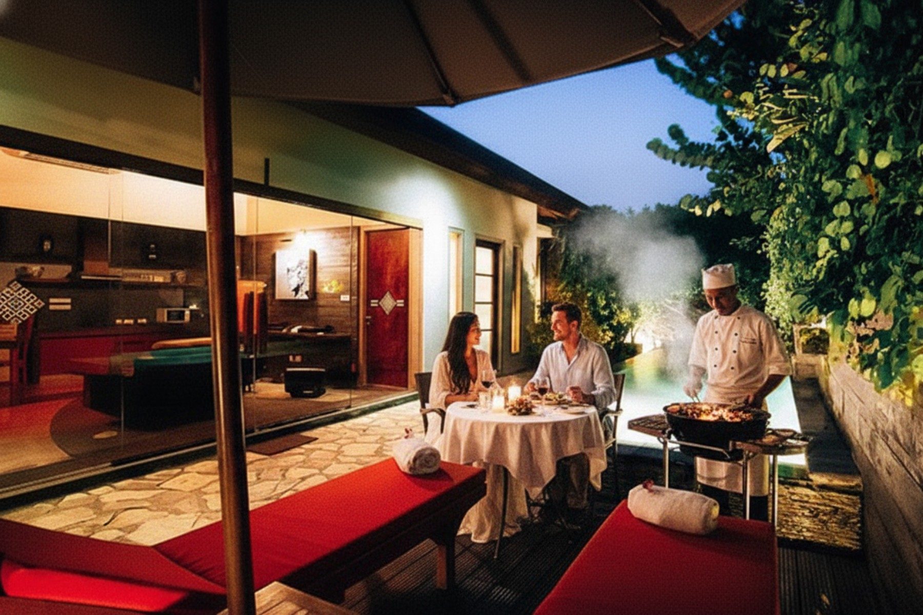At Villa Dining at Bracha Villa Seminyak, guests can savor a personalized culinary experience in the comfort of their own villa. Whether it’s a leisurely breakfast by the pool, a romantic candlelit dinner, or a private gathering with family and friends, the villa’s dining service brings restaurant-quality dishes right to your table. With menus crafted from fresh local ingredients and international flavors, every meal is designed to complement the villa’s intimate and relaxing atmosphere.