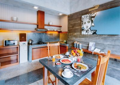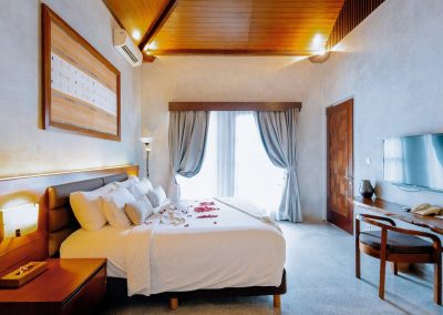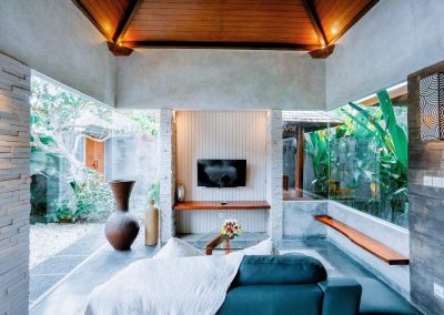 Step into your private sanctuary designed for intimate escapes. The One Bedroom Villa is our most compact yet charming accommodation, featuring a master bedroom with en-suite bathtub, a cozy living room, and a fully equipped kitchenette. Outside, a crystal-clear swimming pool glistens under the tropical sun, framed by lush greenery that creates a romantic ambiance. Perfectly suited for couples or honeymooners seeking privacy, comfort, and unforgettable moments in Bali.