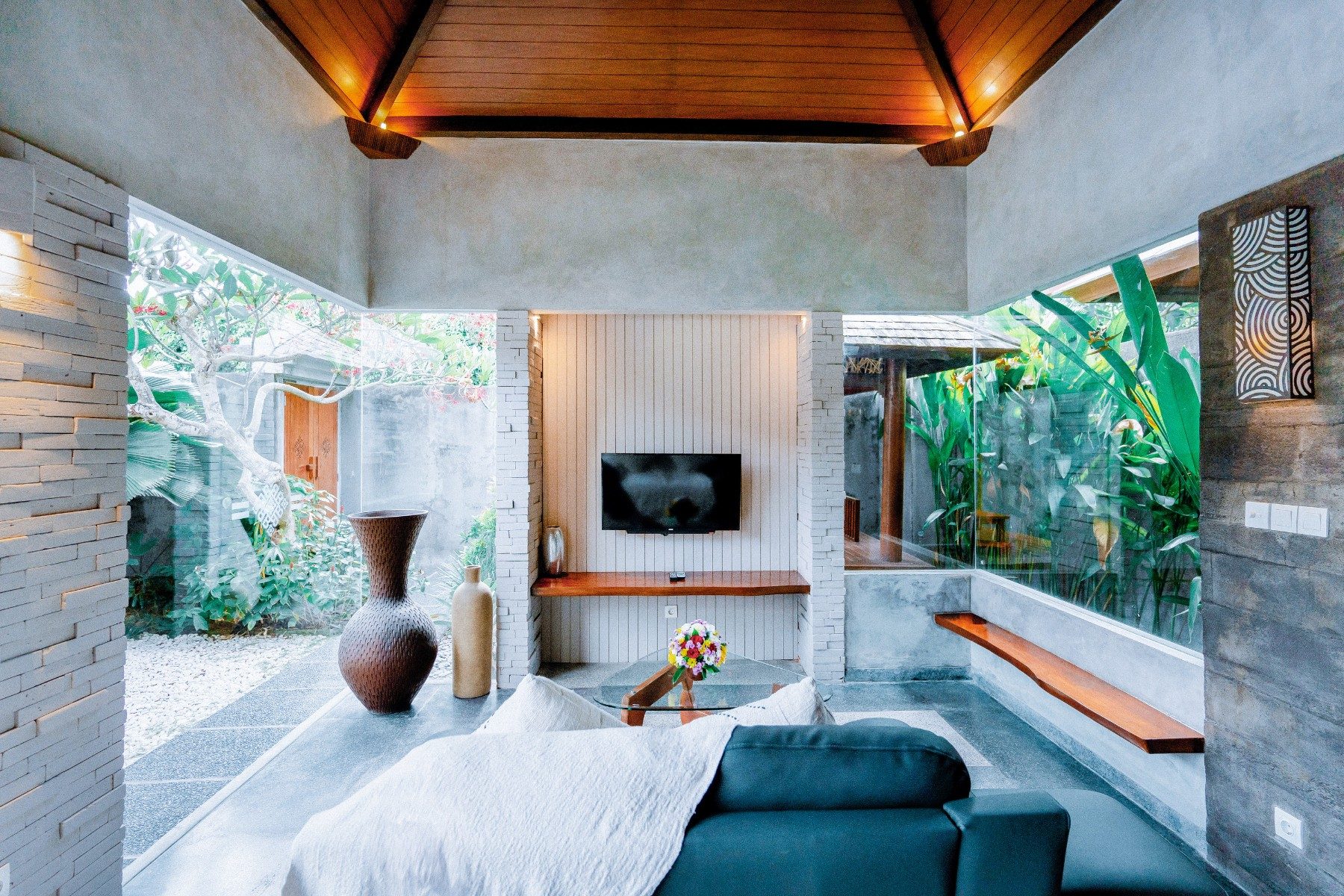 Step into your private sanctuary designed for intimate escapes. The One Bedroom Villa is our most compact yet charming accommodation, featuring a master bedroom with en-suite bathtub, a cozy living room, and a fully equipped kitchenette. Outside, a crystal-clear swimming pool glistens under the tropical sun, framed by lush greenery that creates a romantic ambiance. Perfectly suited for couples or honeymooners seeking privacy, comfort, and unforgettable moments in Bali.