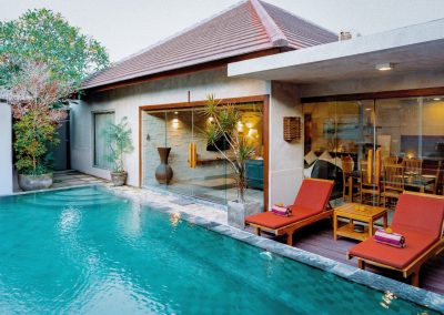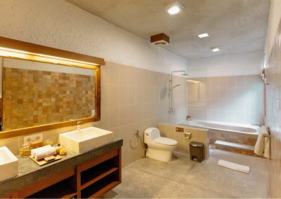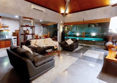 Spacious and welcoming, the Three Bedroom Villa is designed for families and small groups who wish to share memorable moments together. Featuring a master bedroom and two additional bedrooms, each complemented with modern comforts, this villa ensures both privacy and connection. A private pool set amidst lush greenery becomes the centerpiece, perfect for sunbathing, swimming, or gathering poolside. With all the amenities of our other villas, it is the ideal base for a tropical getaway with loved ones.